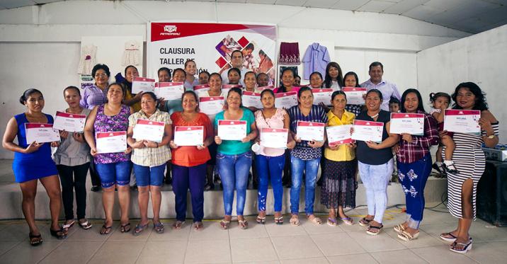 Se clausuró el Taller de Costura organizado por PETROPERÚ en el que participaron 30 mujeres del centro poblado de Maypuco, distrito de Urarinas, en Loreto. Y se entregaron 15 máquinas de coser, 3 mesas de trabajo para corte y patronaje, e implementos de costura en beneficio de las participantes y la población en general.